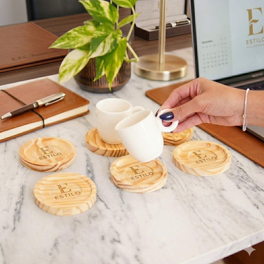 Ideal para Welcome Kits, brindes de final de ano ou mimos de agradecimento. A combinação da cerâmica com a madeira traz acolhimento e um toque de alto padrão à mesa de trabalho ou reuniões.